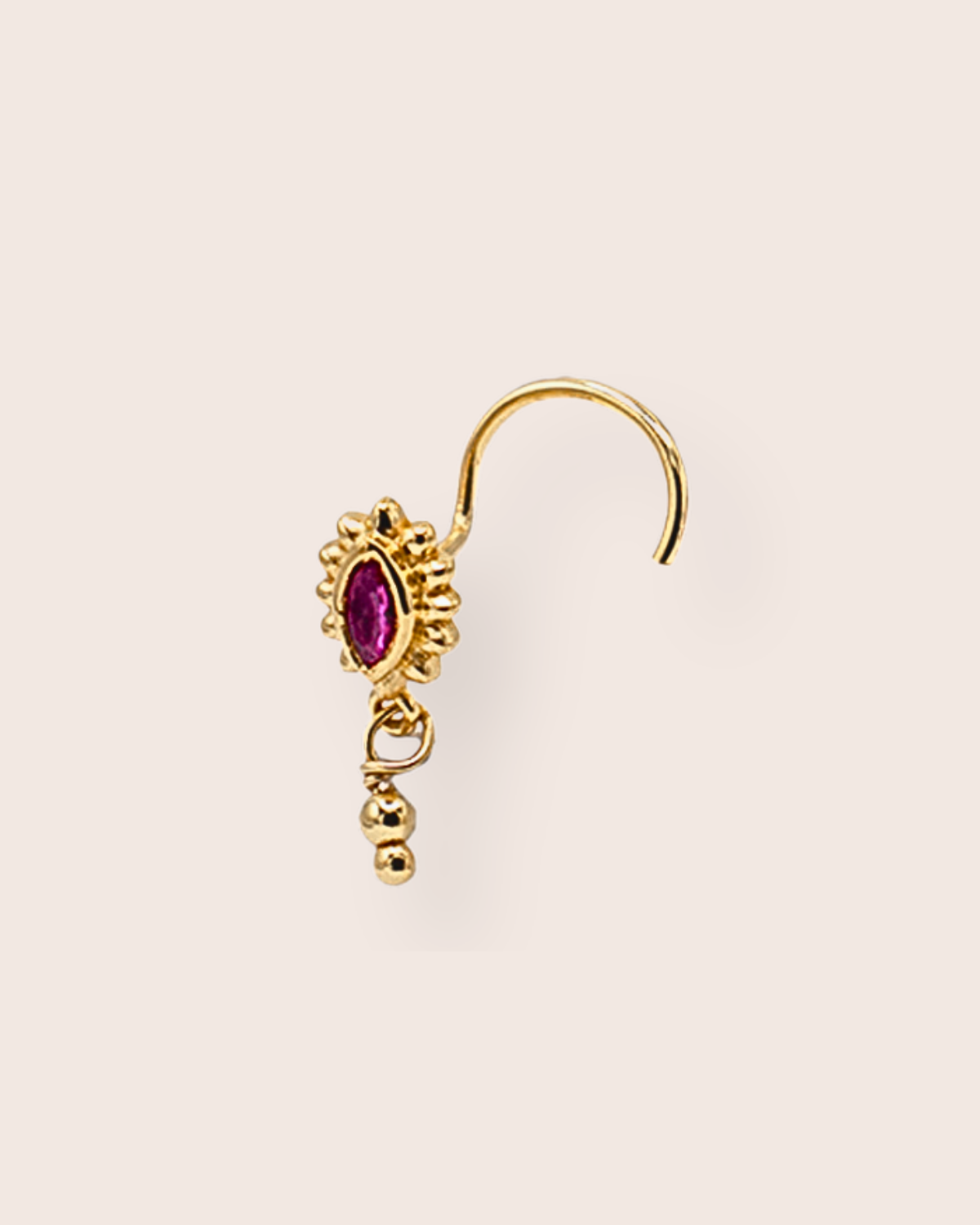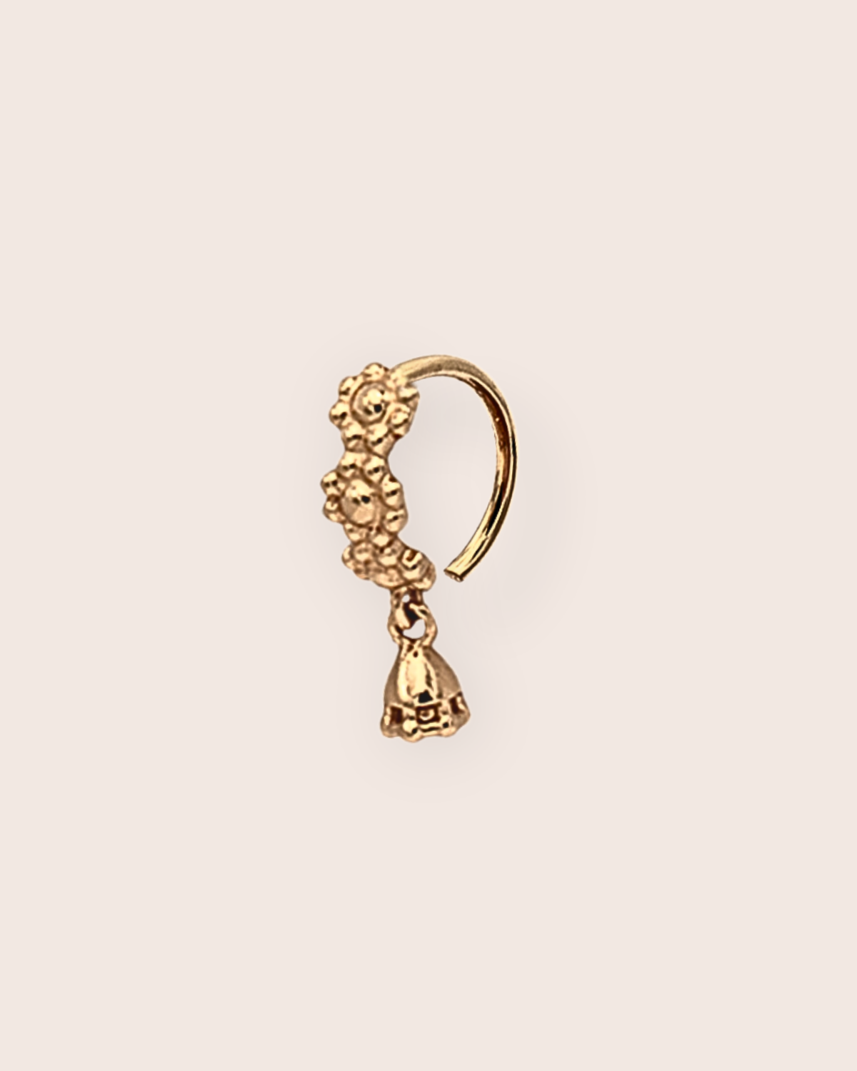 Arrived fast and is so easy to put in. I love it so much. It looks so good. I wanted a gold nose ring that would stand out in pictures and this one definitely does!!