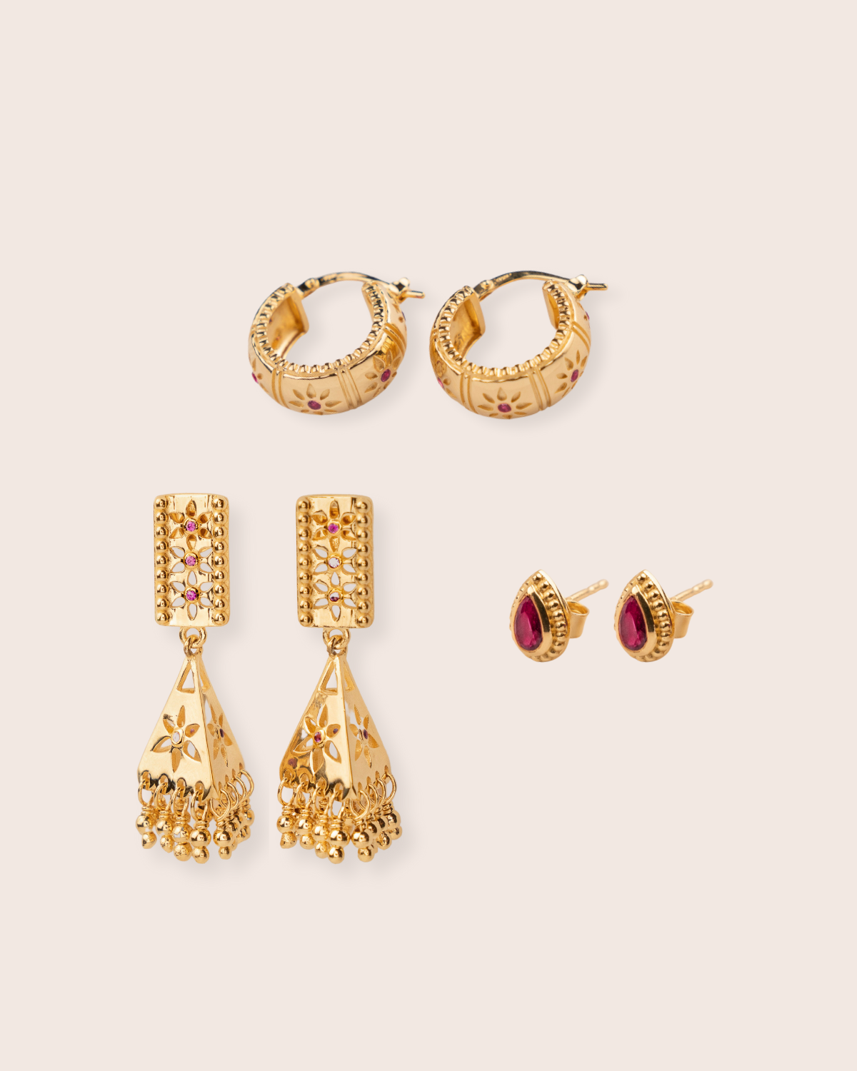 I'm in love with these!!!!!I've been eyeing this bundle for some time now and I am so happy that I bought it! Both pairs are extremely light and comfortable to wear, far more comfortable than my traditional desi earrings and even most of my western earrings. They look so good stacked together, but I also love to mix and match them with my other earrings. Shipping was prompt and easy to track and everything was very well packaged. You can really tell how much thought went into these designs. These are so perfect for desi girls to incorporate into everyday wear without having to deal with heavy earrings, screw backs, etc. I will definitely be making more purchases in the future!