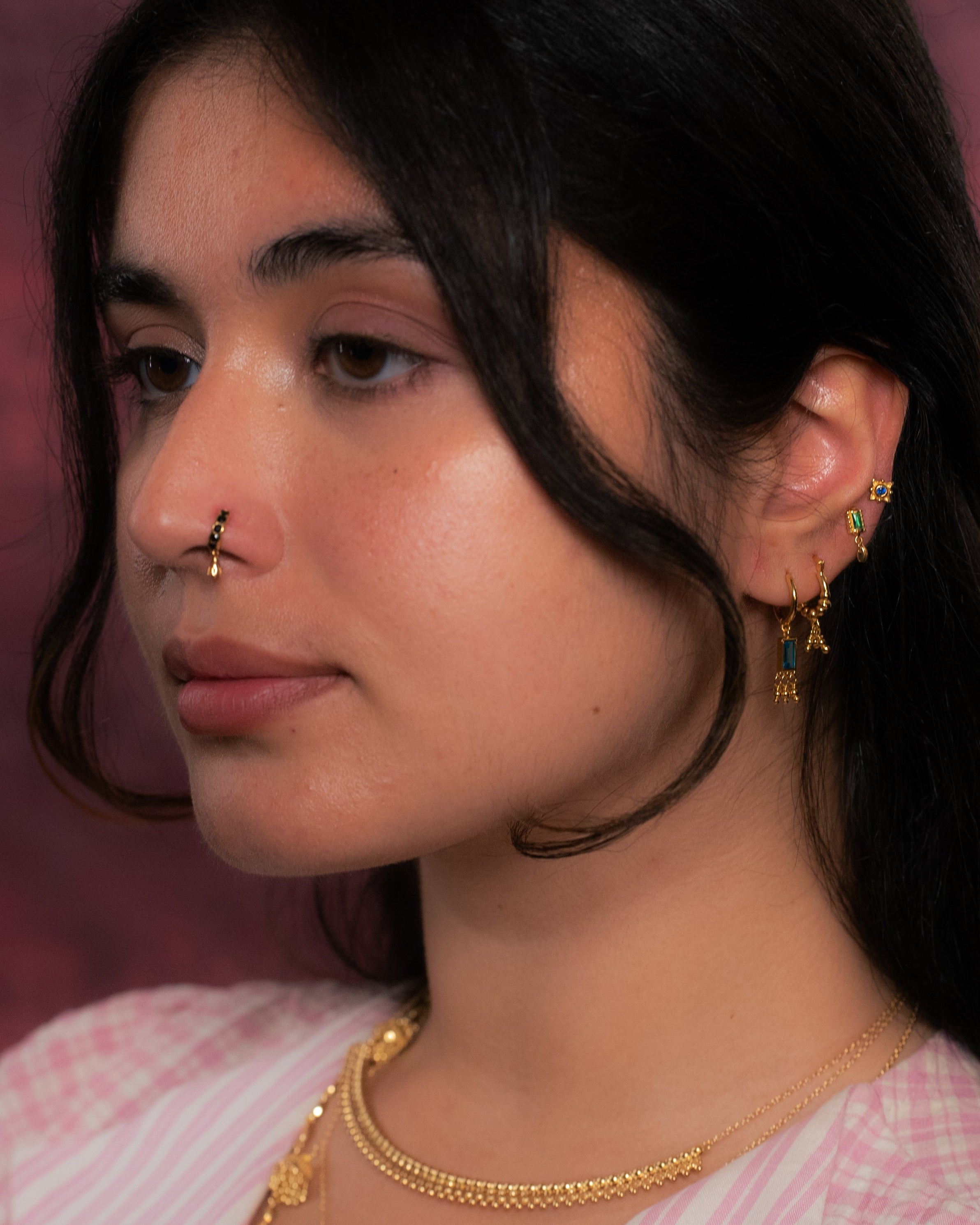 I love these hoops! They’re the perfect addition to my everyday earring stack. I’m picky, so I don’t switch up my jewelry often. I get so many compliments when I wear these in the office. The subtle hint of desi design and color from the stone makes me so happy. They feel like great quality, the stem of the earring is sturdy- doesn’t bend easily like other earrings. Cannot recommend enough and I excited to add another Kaju Studios earring to my collection!
