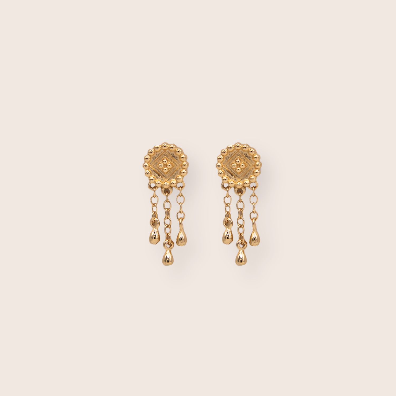 Meet the Aavya studs. Dynamic chains dangling off of a beautiful circular stud make this a stunning stacking piece. With aesthetics rooted in South Asia, this piece is a perfect addition to any jewelry box. Sold as individuals or in pairs.