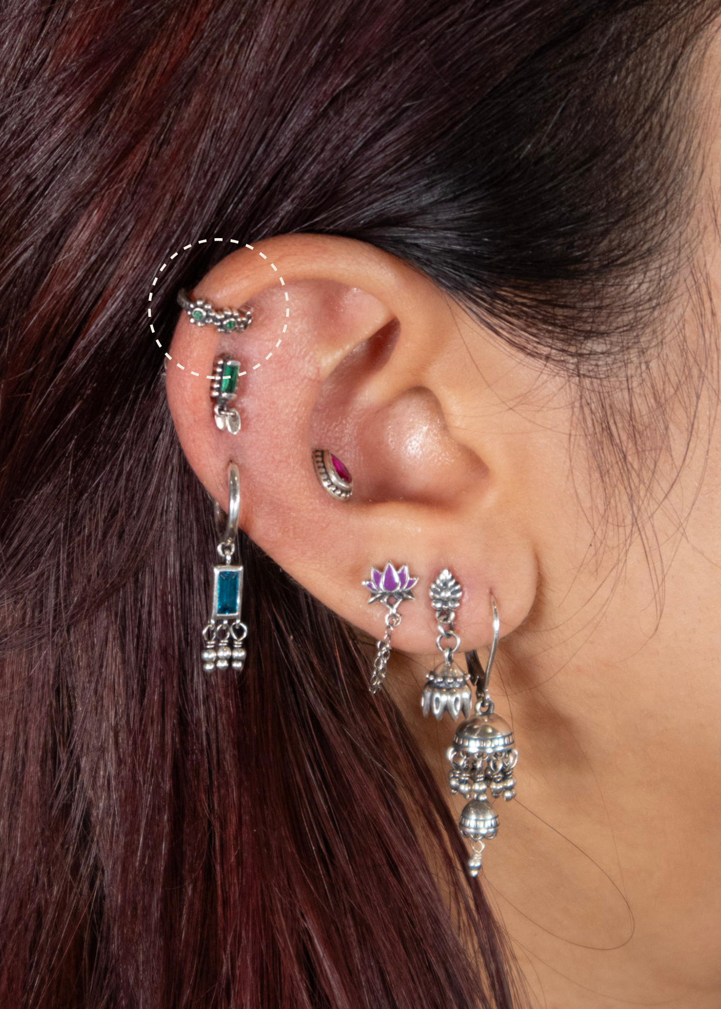 Our silver jewelry is made of oxidized 925 sterling silver: top-notch silver with a traditional South Asian oxidized flair.