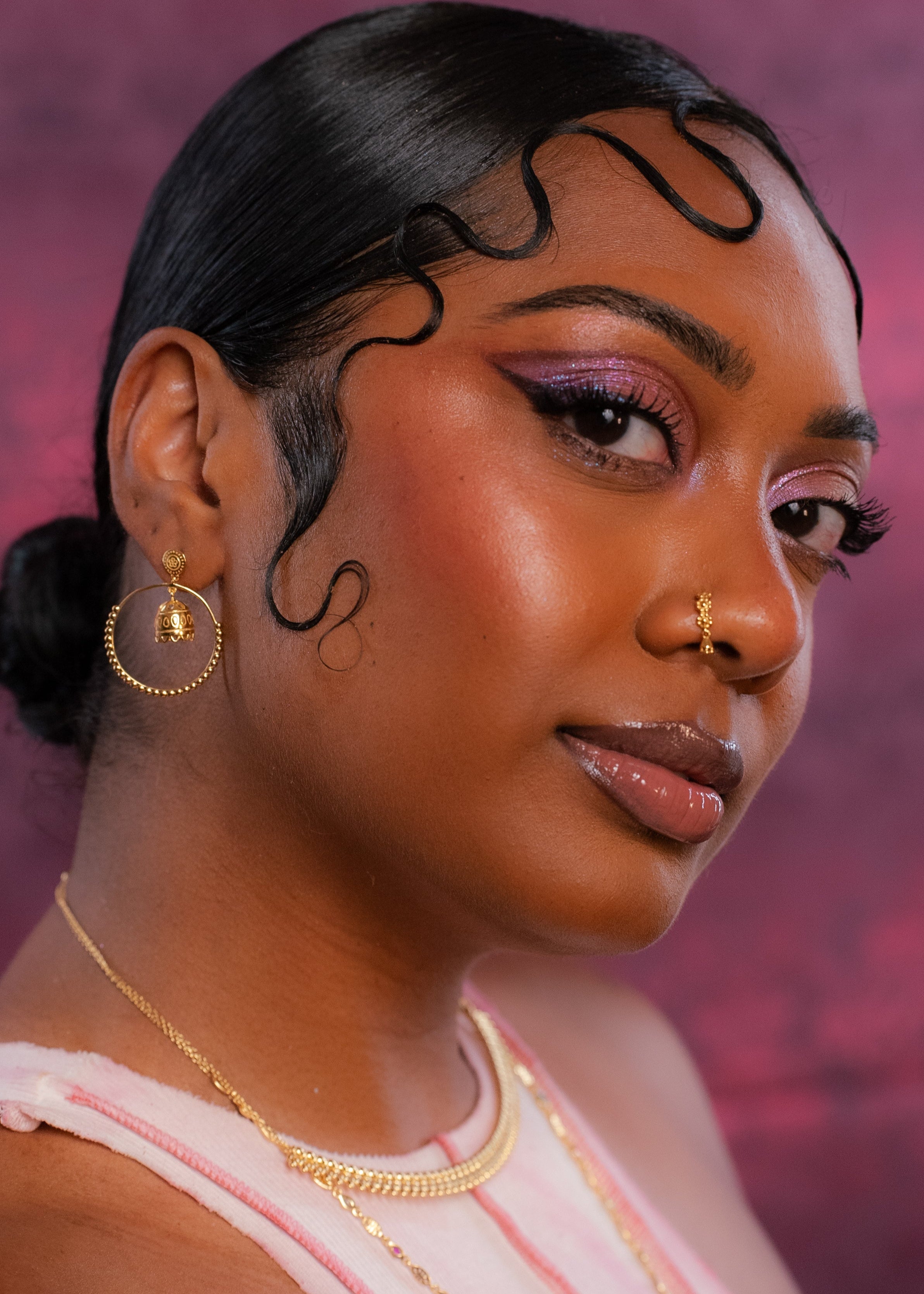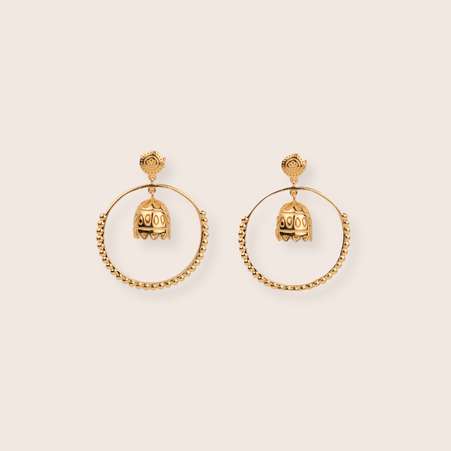 Meet the Kiran Jhumka Hoop. Reminiscent of a popular South Asian earring style, you get the best of both worlds with the Kiran. A jhumka dangles gracefully within a uniquely oriented hoop, making these earrings a standout accessory for any look. Sold in pairs.