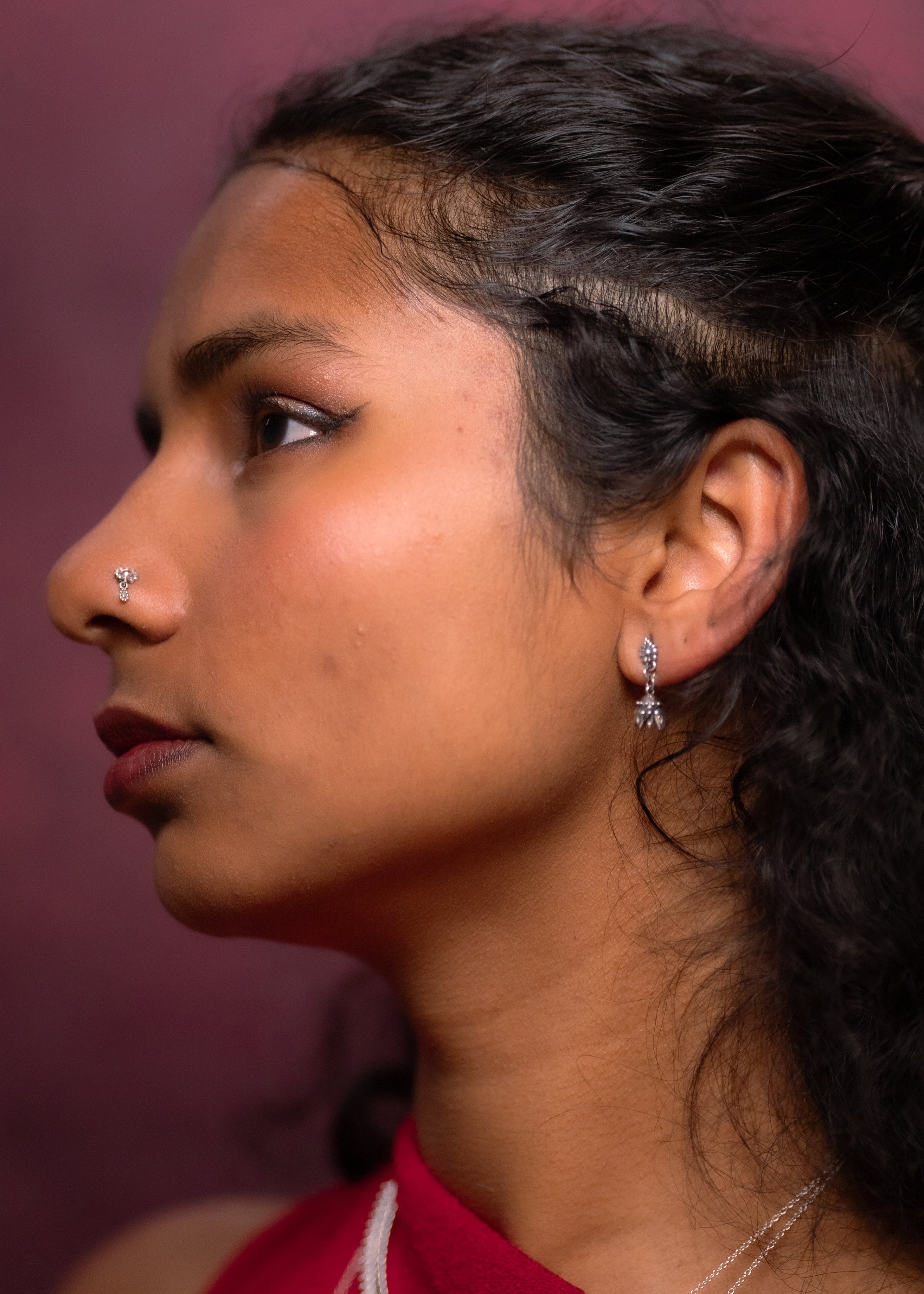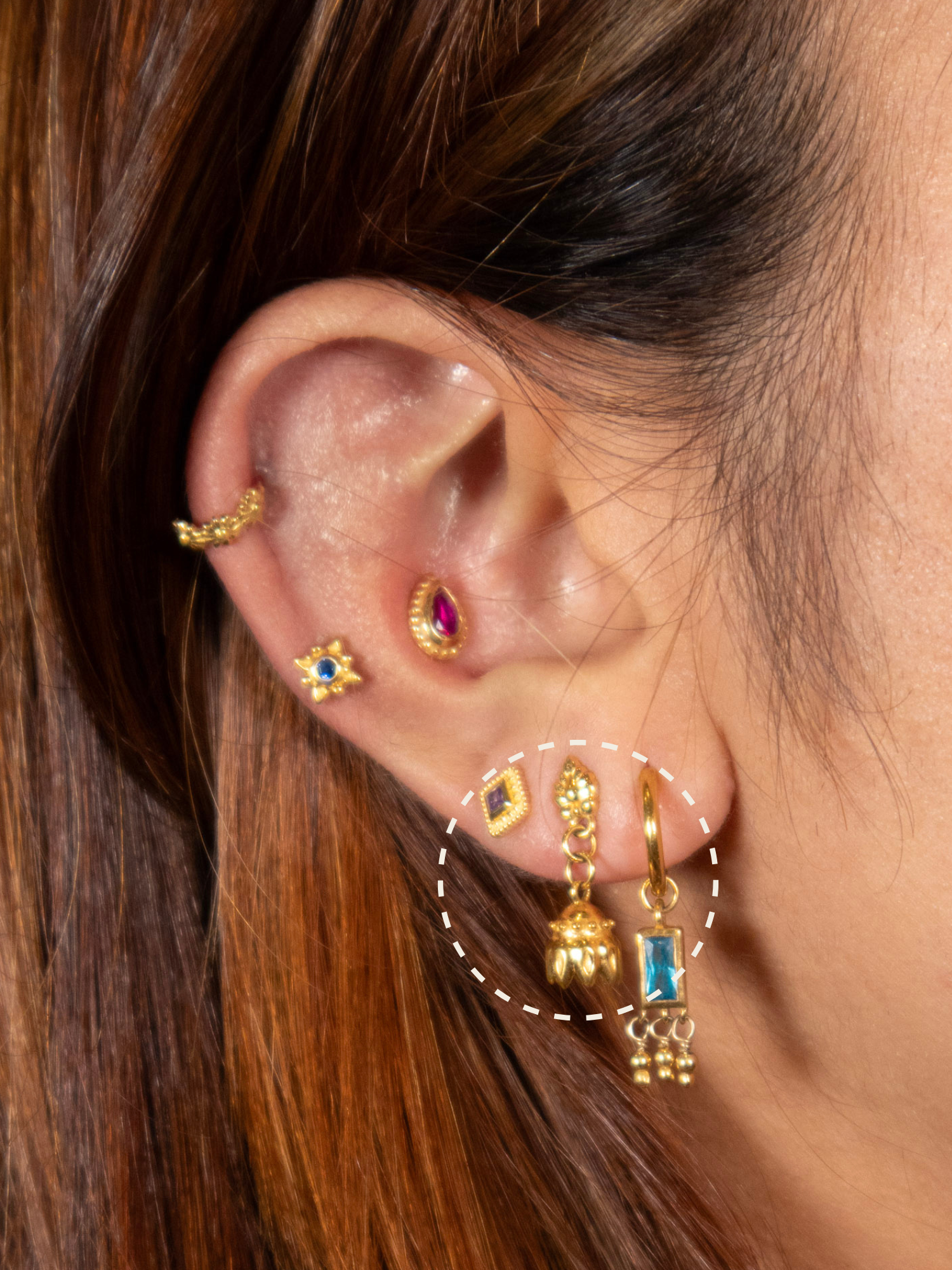 Meet the Suriya Jhumka. This interpretation of a traditional Desi jhumka was heavily inspired by the beauty of sunflowers. Featuring leafy and floral motifs, this earring is the perfect fresh addition to your ear stack.