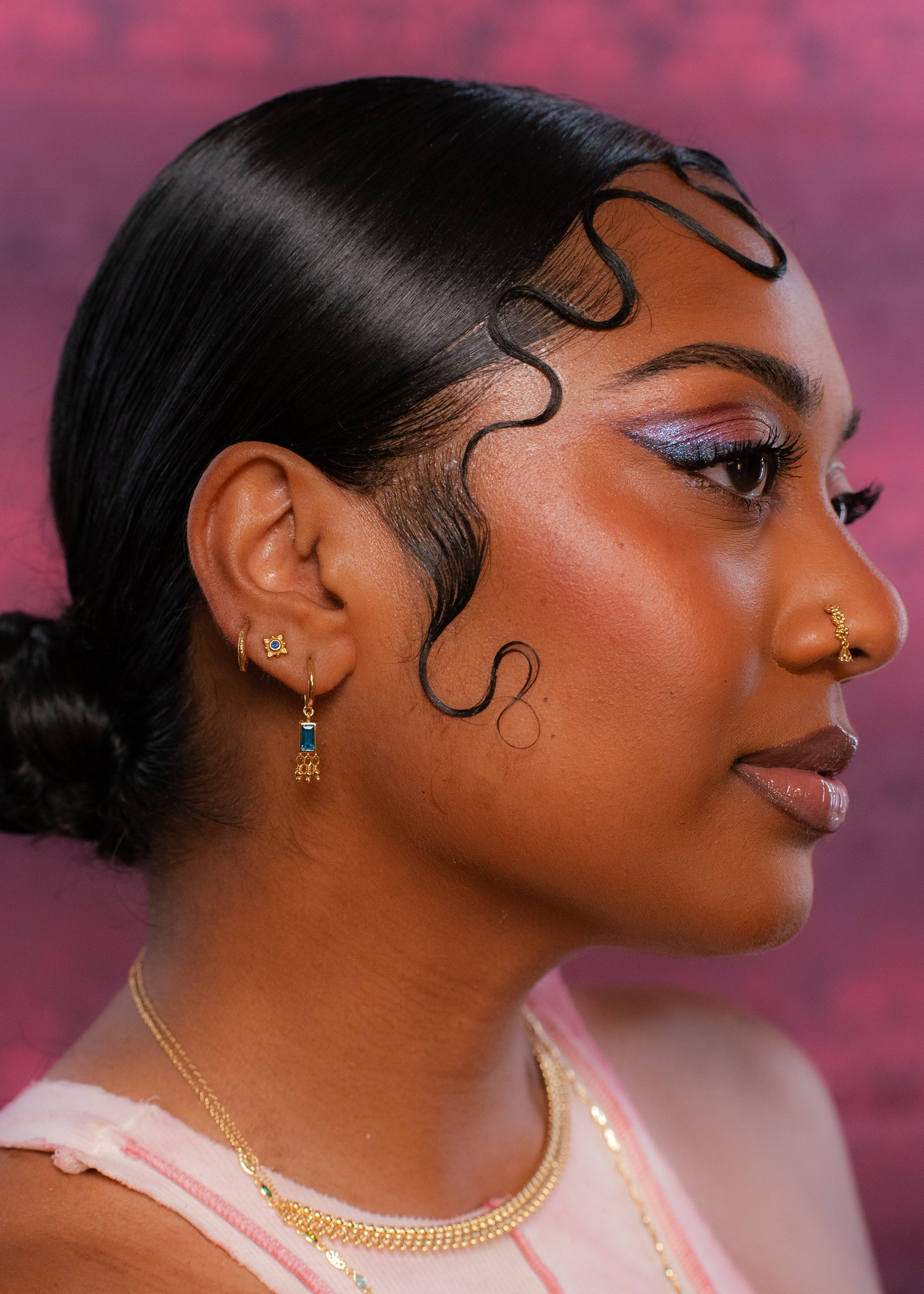 Meet the Laila Stud and Kaveri Hoop. This duo pairs a sapphire-blue starburst stud with a teal-gem pendant hoop, bringing together celestial sparkle and fluid elegance. Wear them together for a vibrant, mixed-texture stack, or style them separately to let each unique design shine on its own.